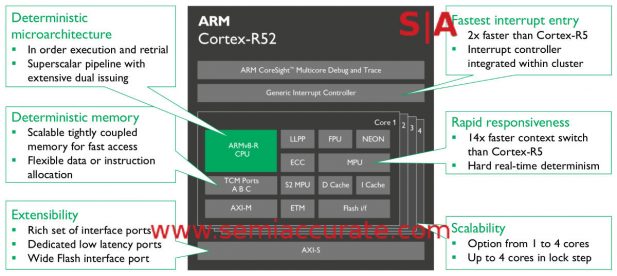 the surface the R52 looks pretty familiar, four clustered cores, AXI-5 bus, and